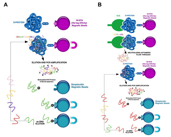 - Li, J.; Zhang, Z.; Gu, J.; Stacey, H.; Ang, J.; Capretta, A.; Filipe, C.; Mossman, K.; Balion, C.; Salena, B.; et al. Diverse high-affinity DNA aptamers for wild-type and B. 1.1. 7 SARS-CoV-2 spike proteins from a pre-structured DNA library. Nucleic Acids Res. 2021, 49, 7267–7279. [Google Scholar] [CrossRef] [PubMed]