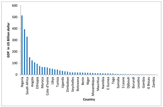 Figure 4 displays the GDP of African countries. The figure shows that Nigeria’s GDP is the largest (504 billion dollars), while Sao Tome and Principe’s is the smallest (0.5 billion). The average GDP for 54 African countries is 62.78 billion USD.