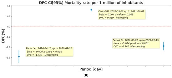 - da Silva, F.F.; de Abreu, L.C.; Daboin, B.E.G.; Morais, T.C.; Cavalcanti, M.P.E.; Bezerra, I.M.P.; da Silva, C.G.; Figueira, F.A.M.D.S.; de Caldas Guedes, V.V.; Perez Riera, A.R. Temporal Analysis of COVID-19 Epidemiological Indicators in a Low-Income Brazilian Context: A Retrospective Analysis in Paraiba State. Viruse 2023, 15, 2016. [Google Scholar] [CrossRef] [PubMed] [PubMed Central]