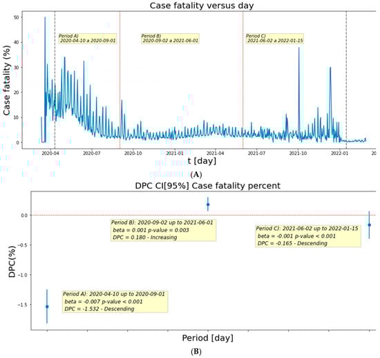 - Cavalcanti, M.P.E.; Siqueira, E.; Moraes, T.C.; Guerrero, B.; Portugal, I.B.M.; Pimentel, R.M.M.; Silva, H.M.R.; Jacintho, L.C.; Elmusharaf, K.; De Abreu, L.C. Trends in COVID-19 lethality and mortality rates in the State of Pernambuco, Brazil: A time series analysis from april 2020 to june 2021. J. Hum. Growth Dev. 2022, 32, 327–338. [Google Scholar] [CrossRef]