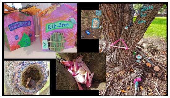 We made fairy houses and, when government lockdown restrictions permitted, we set up fairy villages in public spaces throughout Auckland (Figure 1). We did this as a means of creating a sense of connection among the community in the context of—indeed, in spite of—social isolation borne of the pandemic. Similarly, we painted stones (Figure 2), some of which became elements of the fairy houses, and we wove harakeke flax into small flowers and baskets as a symbol of our interconnected experiences (Figure 3). In New Zealand, woven items such as flowers and baskets are frequently referenced to symbolize people connecting and ‘weaving’ in and out of each other’s lives. Tanisha is trained in Māori weaving and so passed on this knowledge to Daniela with this connection symbolism in mind. These art/o/graphical processes took place in our respective homes and in public parks. They helped us make sense of the pandemic shaping of our lives and supported our wellbeing as we ‘bounced forward’—rather than back—from the pandemic [47]. They also fostered our value of connecting with and caring for others. Caring for community was demonstrated through the creation of fairy gardens, which included painted stones (Figure 1 and Figure 2). Caring for clinicians was demonstrated through Daniela’s research project. Caring for learners was demonstrated through Tanisha’s creation of online learning materials, and so forth.