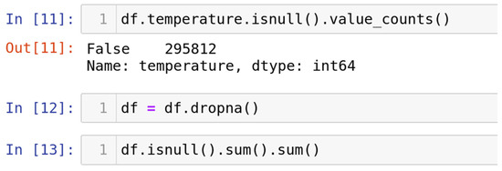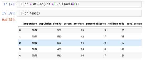 The approach frequently employed to address the issue of null values involves a method known for its efficacy, as shown in Figure 3. It is prudent to exercise this method solely when the dataset comprises adequate samples. Removing data bearing null values may result in the unfortunate loss of vital information, thereby compromising the anticipated accuracy of output predictions. The "df.dropna()" function is employed to execute this method, allowing for the expeditious elimination of entire rows or columns containing null values, as per the data analyst’s discretion.
