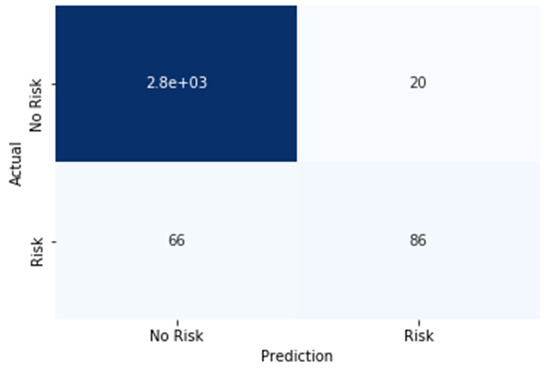 The model in question underwent training employing a simple neural network architecture. The dataset utilized for this purpose was segregated into 70% for training and 30% for testing, adhering to a rigorous experimental design. The attained training accuracy demonstrated a commendable 97%, while the validation accuracy achieved an impressive 96%, affirming the model’s adeptness in generalization. Using a variety of performance measures, including F1 score, precision, accuracy, and recall as obtained from the confusion matrix analysis, a thorough evaluation was carried out to fully assess the performance of our proposed model. Figure 6 visually represents the confusion matrix elucidating the outcomes for the test data, thus providing invaluable insights into the model’s predictive capabilities. In fact, in outbreak detection, the size of the confusion matrix plays a pivotal role in assessing the performance of the detection system. A larger matrix offers a more detailed evaluation, enabling fine-grained analysis across various outbreak categories, severity levels, or geographical regions. This granularity empowers decision-makers to prioritize interventions effectively and fine-tune detection models for improved accuracy. However, the complexity of interpretation and increased computational demands associated with larger matrices should be considered, highlighting the importance of striking a balance between detailed analysis and practical implementation based on specific operational needs and resource constraints. This rigorous assessment encapsulates the efficacy of our devised model, affirming its viability and potential utility in real-world applications. However, optimizing the confusion matrix involves adjusting detection thresholds to balance false positives and false negatives based on system priorities. Techniques include fine-tuning thresholds, employing advanced machine learning methods like feature engineering and anomaly detection, and continuously updating algorithms based on real-world feedback and new data to enhance outbreak detection accuracy.