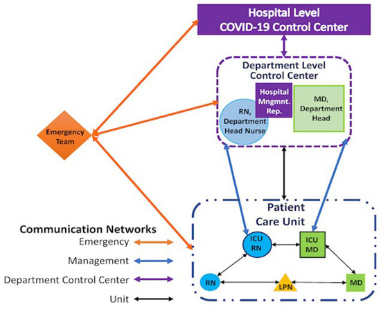 On the top of the communication hierarchy stood the Hospital Level COVID-19 Control Center, which was in direct communication with the Department Level Control Centers (DLCC). The DLCC members were the departments’ head doctor, the head nurse, and a hospital management representative. Under the DLCC, in the communication hierarchy, stood the Patient Care Unit. This unit also had a head doctor and a head nurse who were in contact with the medical staff who were treating the COVID-19 patients.