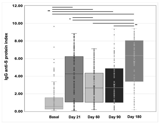 | IgG day 180 (mean, p25–p75) | 6.34 (1.10–7.67) | 6.33 (3.94–8.25) | 0.197 |