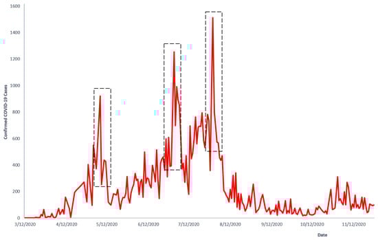 Confirmed COVID-19 cases in Ghana. Source of data: Manu (2020) [38].