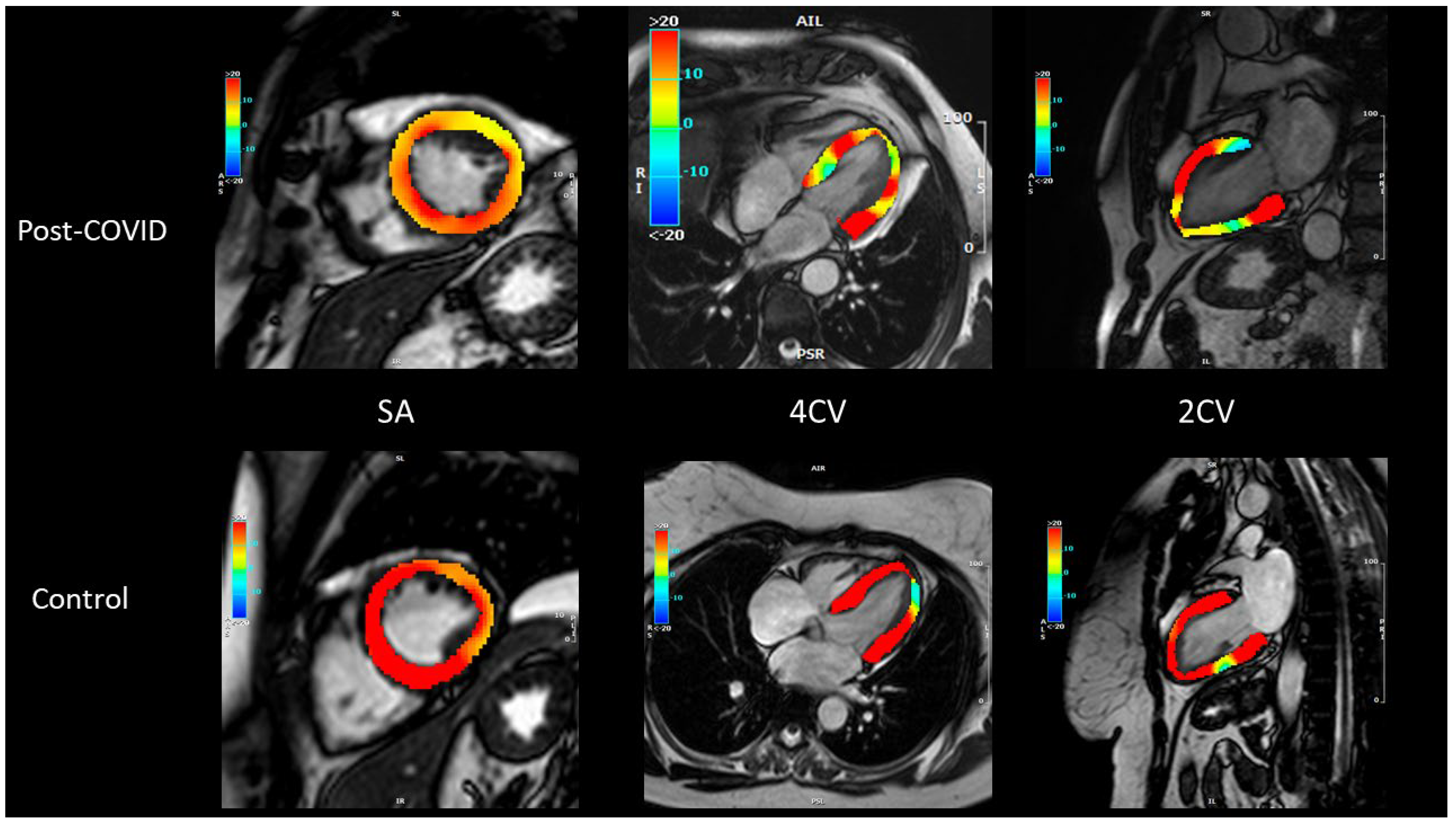 - Li, X.; Wang, H.; Zhao, R.; Wang, T.; Zhu, Y.; Qian, Y.; Liu, B.; Yu, Y.; Han, Y. Elevated Extracellular Volume Fraction and Reduced Global Longitudinal Strains in Participants Recovered from COVID-19 without Clinical Cardiac Findings. Radiology 2021, 299, E230–E240. [Google Scholar] [CrossRef] [PubMed]