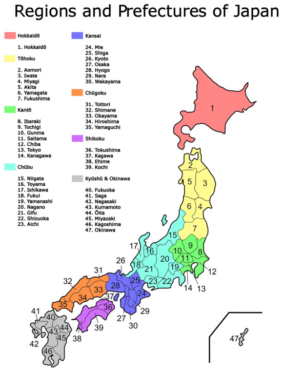 The following observations can be made from Table 3. The table includes 15 prefectures, among which are 5 prefectures from the Kanto region (Nos. 10–14) and 4 from the Kansai region (Nos. 26–29). These two regions are well known as the political and economic centers of Japan, and they are also famous for their commercial areas and tourist destinations, making them hubs of human interaction. Additionally, Toyama (No. 16), Gifu (No. 21), and Aichi (No. 23) are included. These prefectures are adjacent to the Kansai region and are known for famous tourist spots. Furthermore, Fukuoka (No. 40) and Oita (No. 44) from the Kyushu region are also listed. These prefectures are hubs in Kyushu, well connected by domestic transportation such as bullet trains and airplanes, and are close to China and South Korea, which makes them closely tied with international connections. They are also famous tourist destinations, contributing to vibrant exchanges with foreign regions.