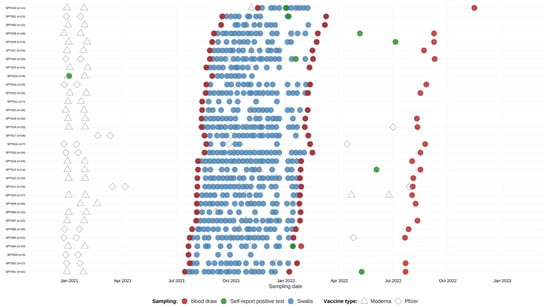 - Rawlings, S.A.; Scott, B.; Layman, L.; Naranatt, P.; Heltsley, R.; Ignacio, C.; Porrachia, M.; Gianella, S.; Smith, D.; Chaillon, A. Can’t Work From Home: Pooled Nucleic Acid Testing of Laboratory Workers During the COVID-19 Pandemic. Open Forum Infect. Dis. 2021, 8, ofab129. [Google Scholar] [CrossRef]