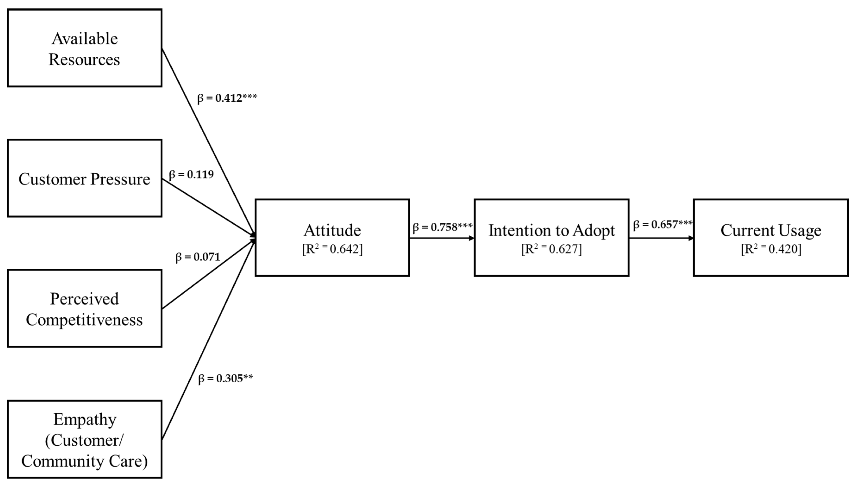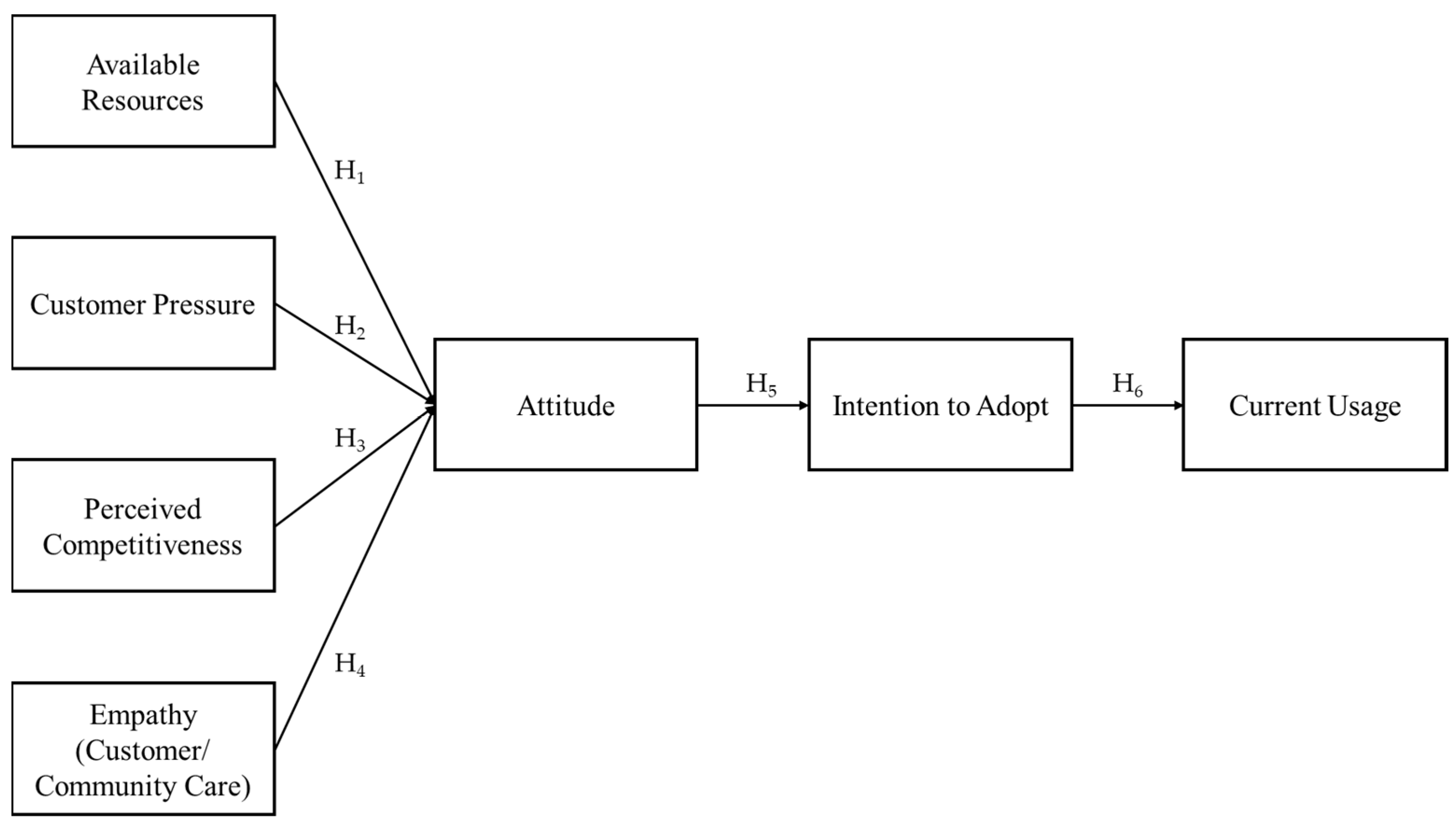 RQ1: How do available resources, customer pressure, perceived pressure from competition, and empathy influence LOORO owners’ attitudes toward adopting digital payments?