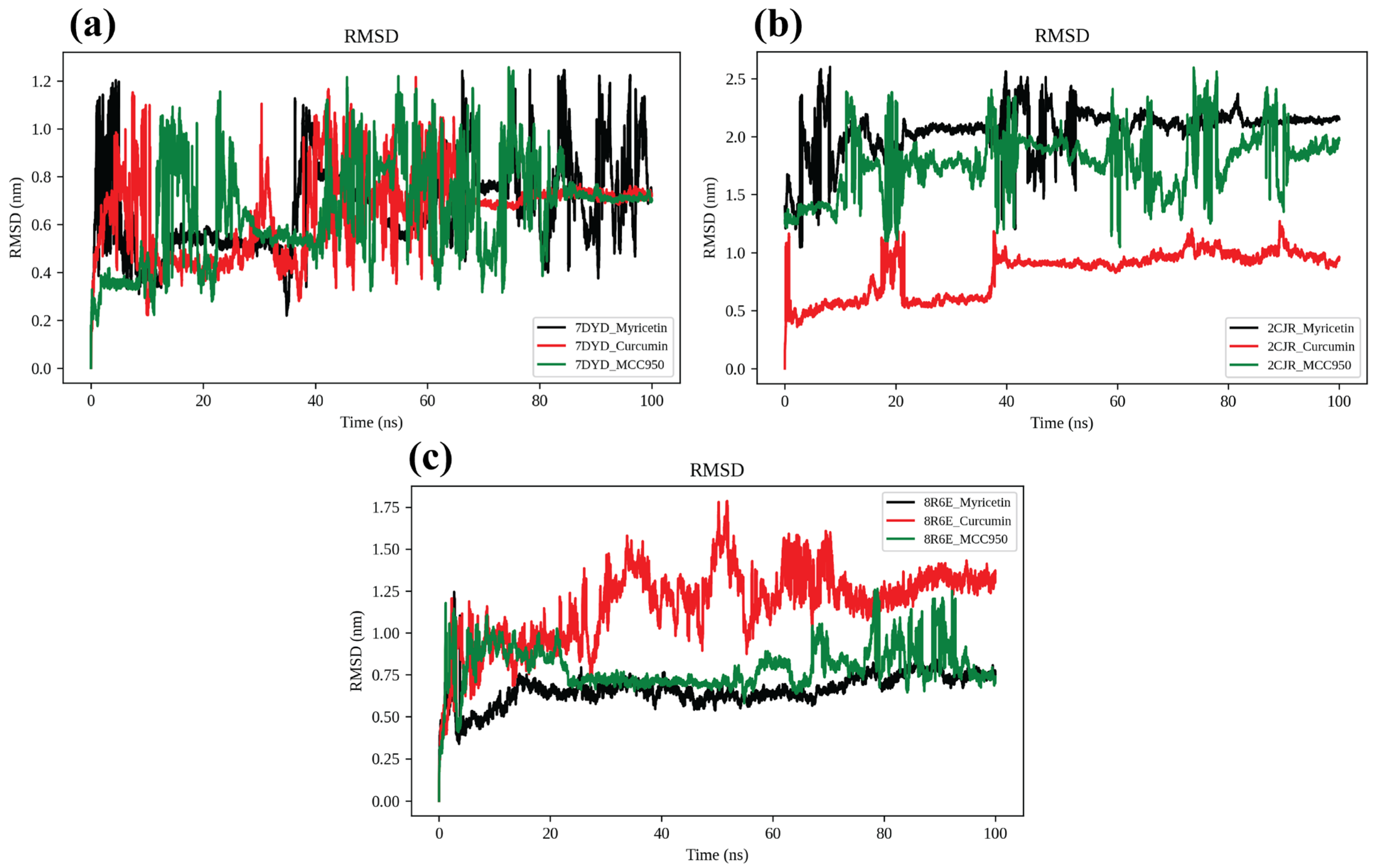 2.6. Molecular Dynamics (MD) Simulation Analysis