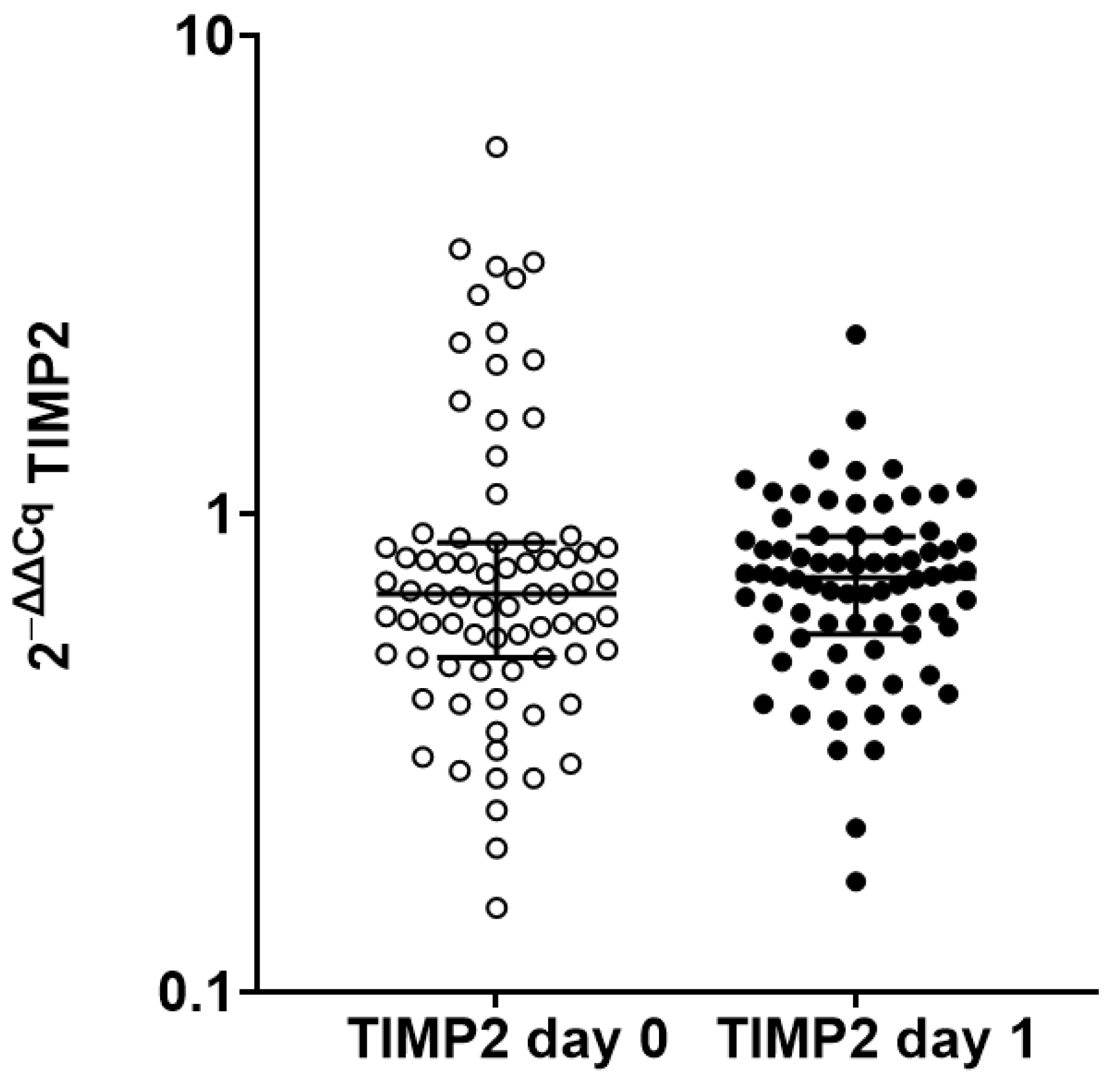 3.1. TIMP2 Transcript Levels in Kidney Transplant Recipients Before and One Day After Transplantation
