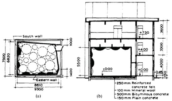 (a) Plan and (b) cross section views of reverberation chamber designed by Duanqi et al. [26].