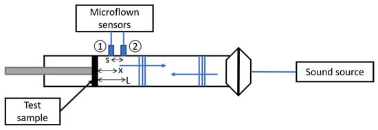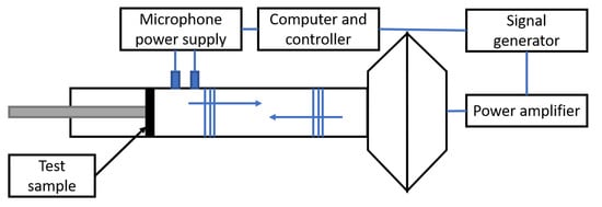 - Chu, W.T. Transfer function technique for impedance and absorption measurements in an impedance tube using a single microphone. J. Acoust. Soc. Am. 1986, 80, 555–560. [Google Scholar] [CrossRef]