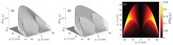Note that the enhancement-effect of high-frequency contributions depends on the coherence length of the contributing light. Furthermore, the NA of the system affects its extension along the -axis. It should be mentioned that the same phenomenon appears at higher surface slopes, where the reflected light is attributed to higher transverse spatial frequency contributions [6,9,34,35,36]. Furthermore, the effect hardly depends on whether the 3D TF of a specular surface or a point scatterer is presumed to be valid.