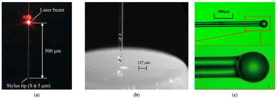 - Michihata, M.; Takaya, Y.; Hayashi, T. Improvement of Laser Trapping Based Microprobe in Laser Shaded Condition. J. Adv. Mech. Des. Syst. Manuf. 2012, 6, 764–770. [Google Scholar] [CrossRef][Green Version]
