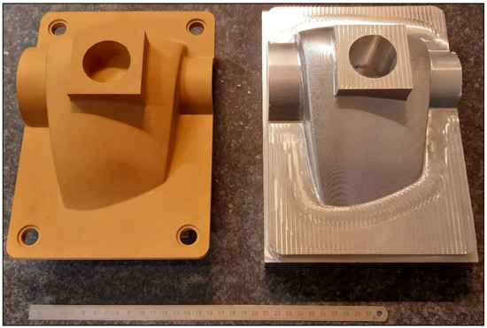 For the validation of the path planning algorithm, the scan path for two objects is determined. The two objects have different surface characteristics, depicted in Figure 10. As a consequence of the different surfaces, the maximum angle of reflectance differs, thus the generated scan path will be different as well. One surface is matte to avoid reflective glare and has a maximum angle of reflectance of 75°. The other surface is milled aluminum, which strongly reflects the laser light, limiting the maximum angle of reflectance to 30°. The aluminum part has no small drilled holes. Therefore, the uncertainty analysis is validated on the matte object. However, the surface of the aluminum part still allows the validation of complete coverage by the LLS.