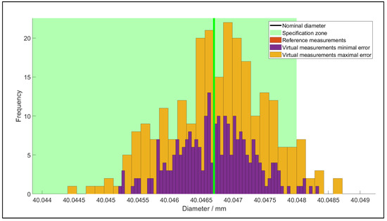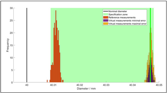 The measured error on the diameter and the virtually determined uncertainty intervals.