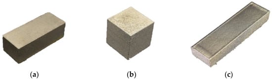 PBF blocks: (a) (50 × 20 × 15) mm3 Inconel 718 PBF-LB block; (b) (20 × 20 × 20) mm3 Ti-6Al-4V PBF-LB cube; (c) (70 × 20 × 15) mm3 Ti-6Al-4V PBF-EB block.
