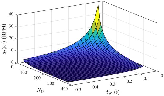 in which the resolution increases with the square of . The remaining parameters, and , can be adjusted according to the application. Considering the use of (14) for a low-resolution encoder with , the resulting values of for different acquisition frequencies and operating angular speeds are shown in Figure 3.