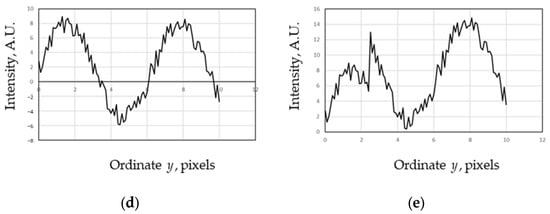 To eliminate the influence of such irregularity, we consider the average profile obtained by summation along the horizontal lines of the image, as shown in Figure 13d. Such a profile does not depend on the horizontal coordinate.