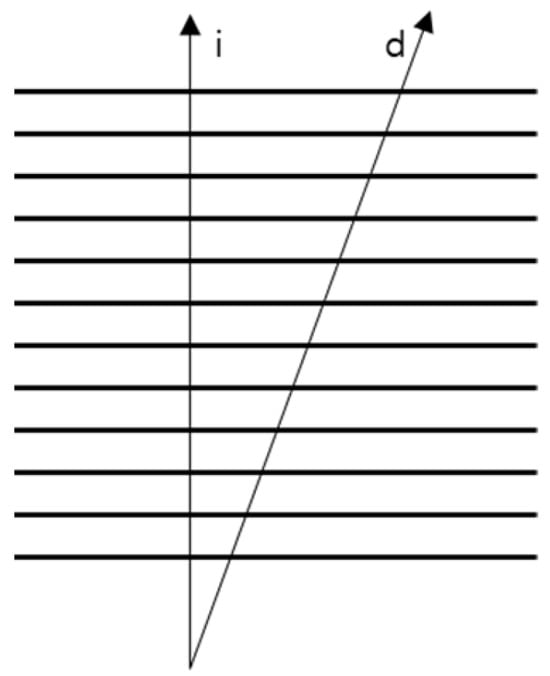 Ideal (“i”) vertical and deviated (“d”) inclined scan lines on a line grid.