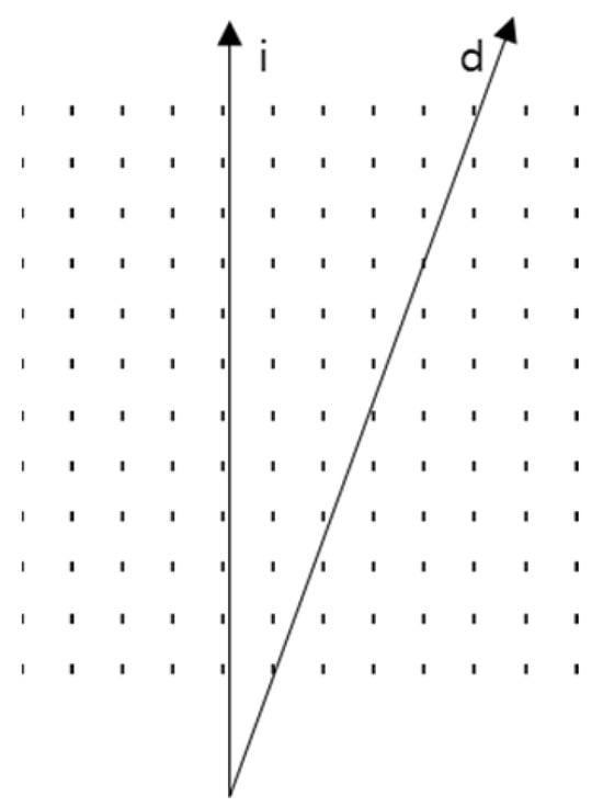 Ideal (“i”) vertical and deviated (“d”) inclined scan lines on a square grid.