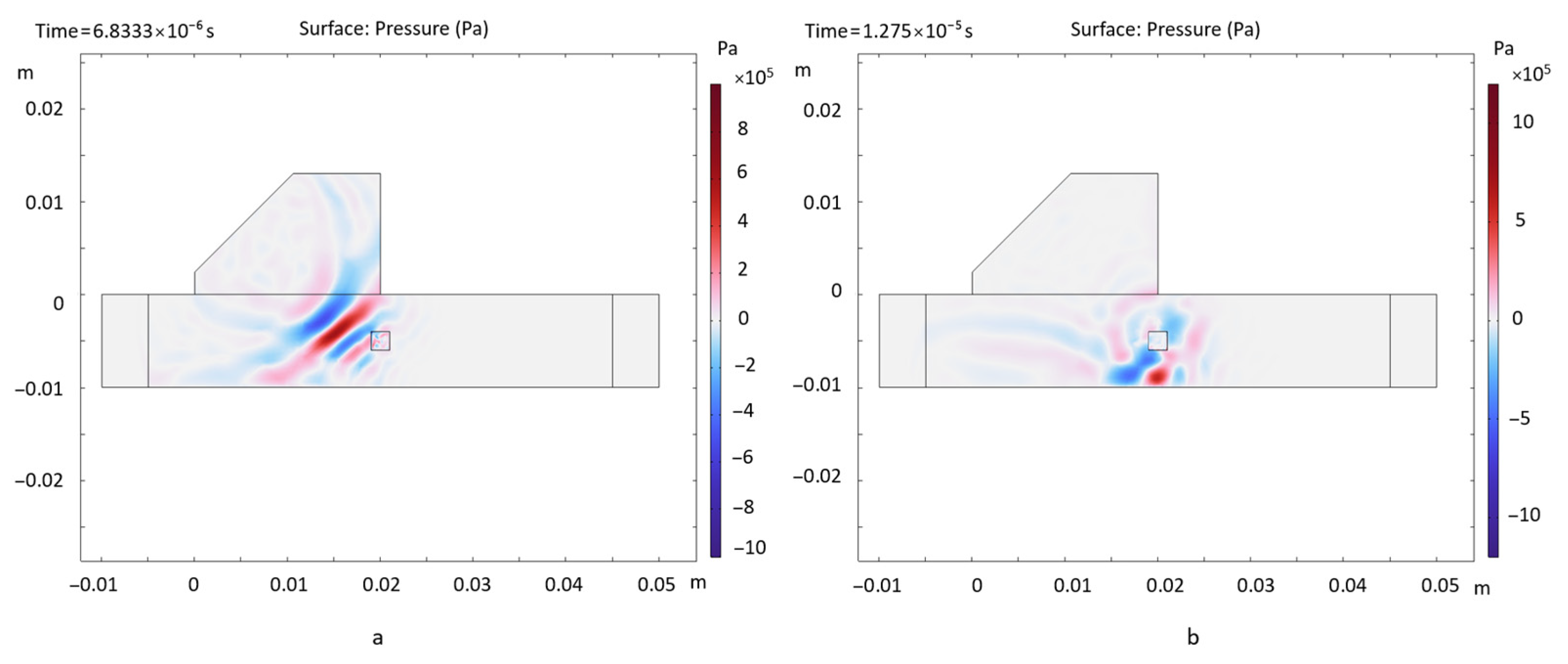 - Surface roughness of the reflecting boundary. To evaluate the influence of the reflector’s surface roughness, the Rayleigh parameter was calculated:
