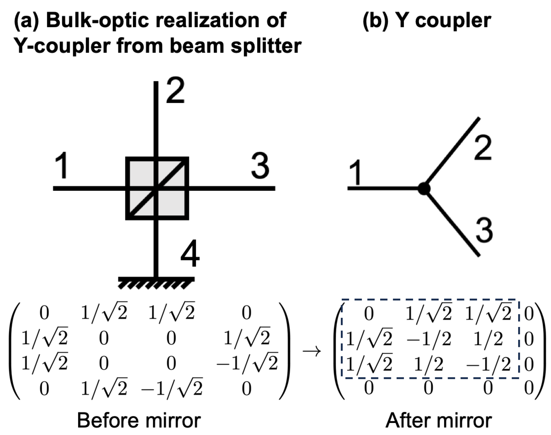 - Schwarze, C.R.; Manni, A.D.; Simon, D.S.; Sergienko, A.V. Single-photon description of the lossless optical Y coupler. Phys. Rev. A 2024, 110, 023527. [Google Scholar] [CrossRef]