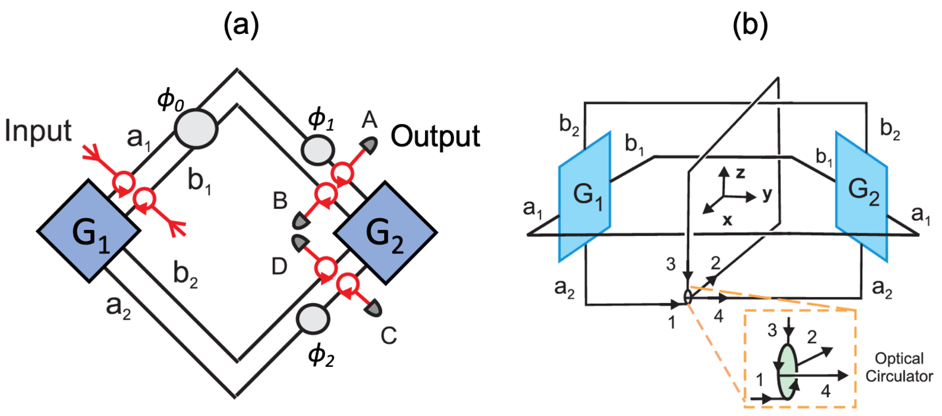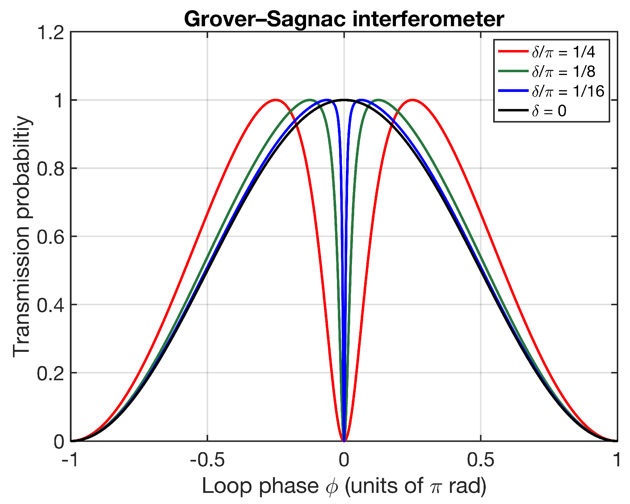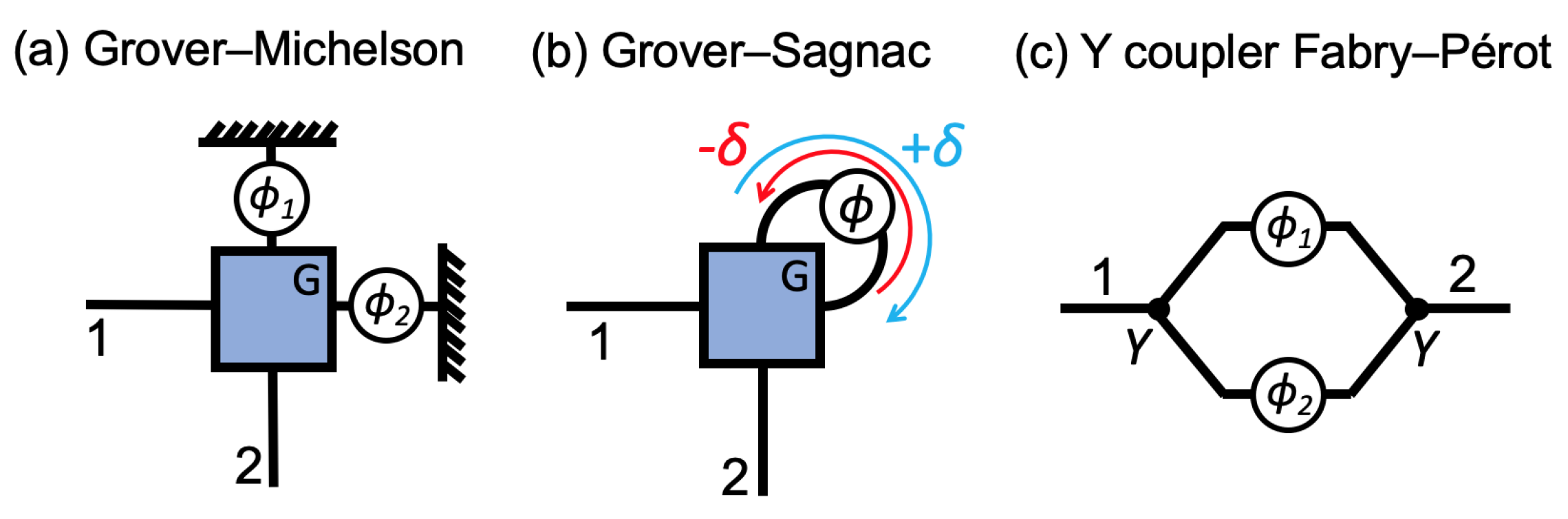 - Schwarze, C.R.; Manni, A.D.; Simon, D.S.; Ndao, A.; Sergienko, A.V. Grover-Sagnac interferometer. J. Opt. Soc. Am. A 2025, 42, 290–297. [Google Scholar] [CrossRef] [PubMed]