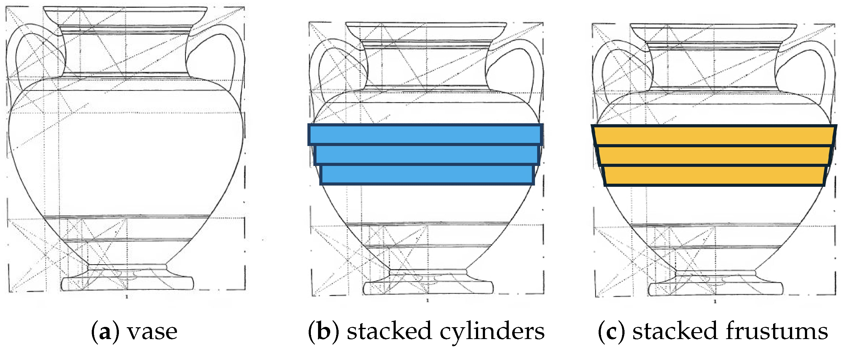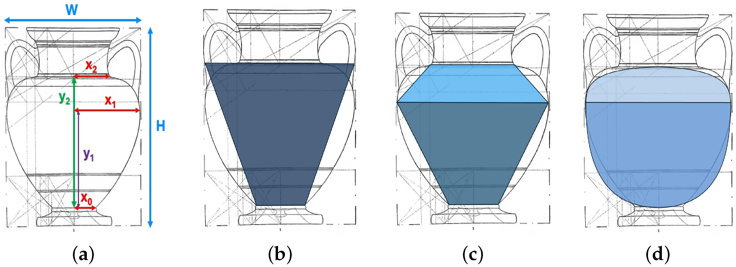 25], calculating the volume of ceramic vessels found whole or in fragments on archaeological sites is a key analytical endeavor that can have implications for economic and social activity, including storage, feasting, and trade. Direct measurements of volume are often infeasible due to age, condition, cracks, and restoration issues. As a result, other methods are needed, many of them based on advances in digital imaging and computer-assisted reconstruction [