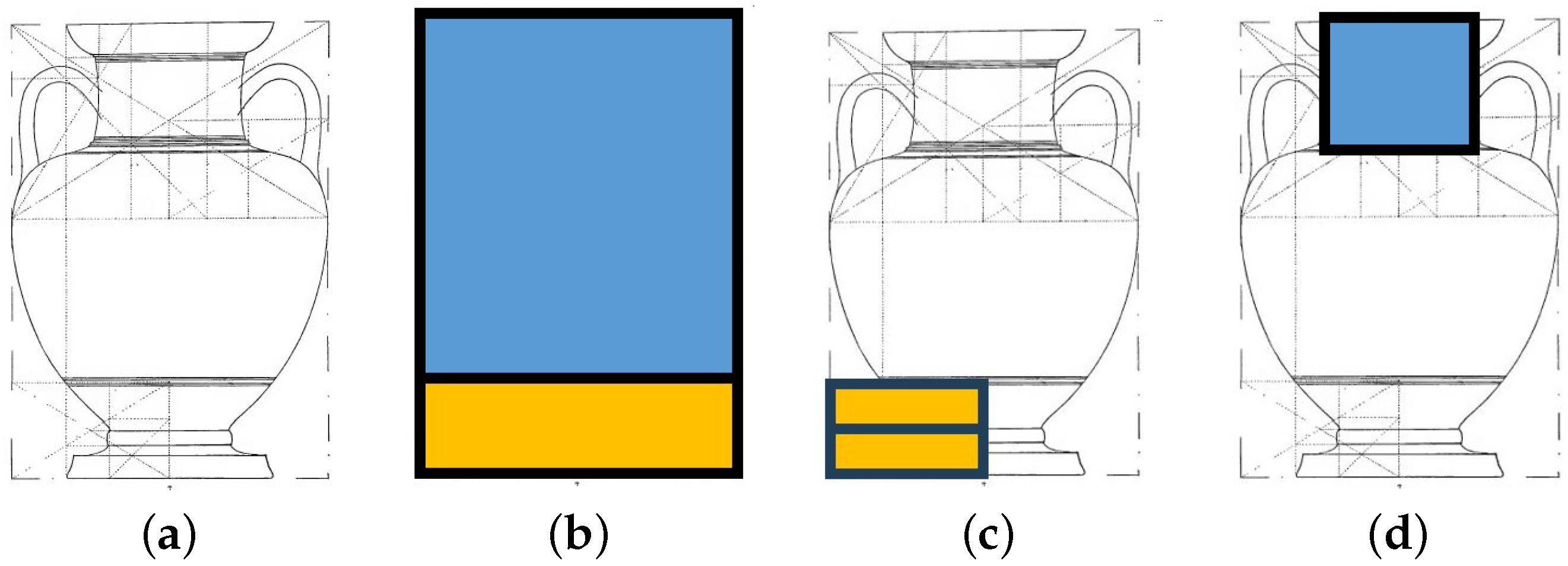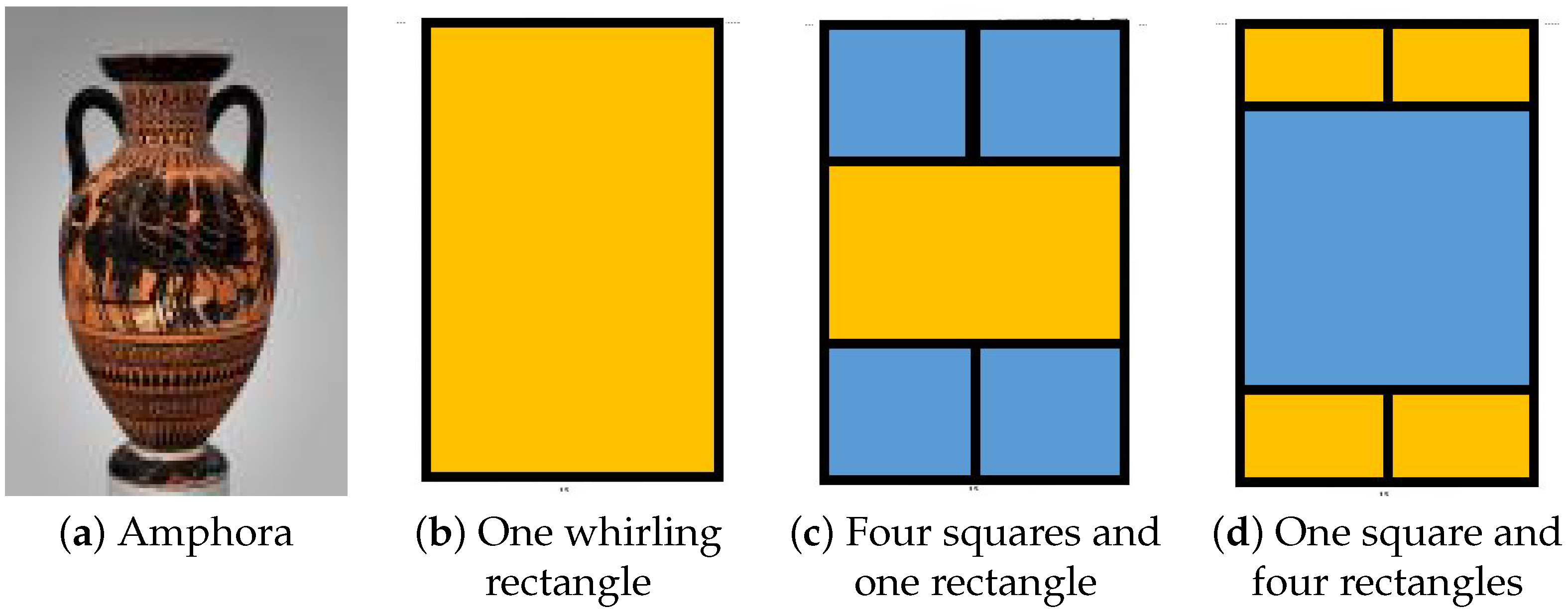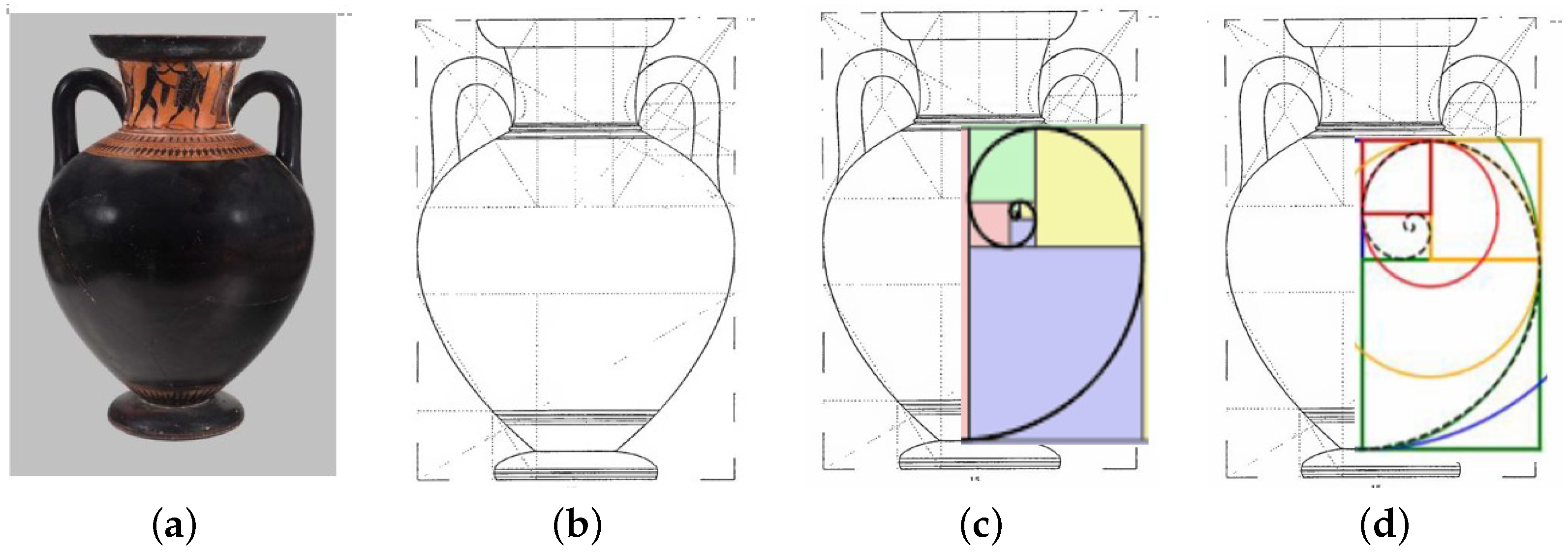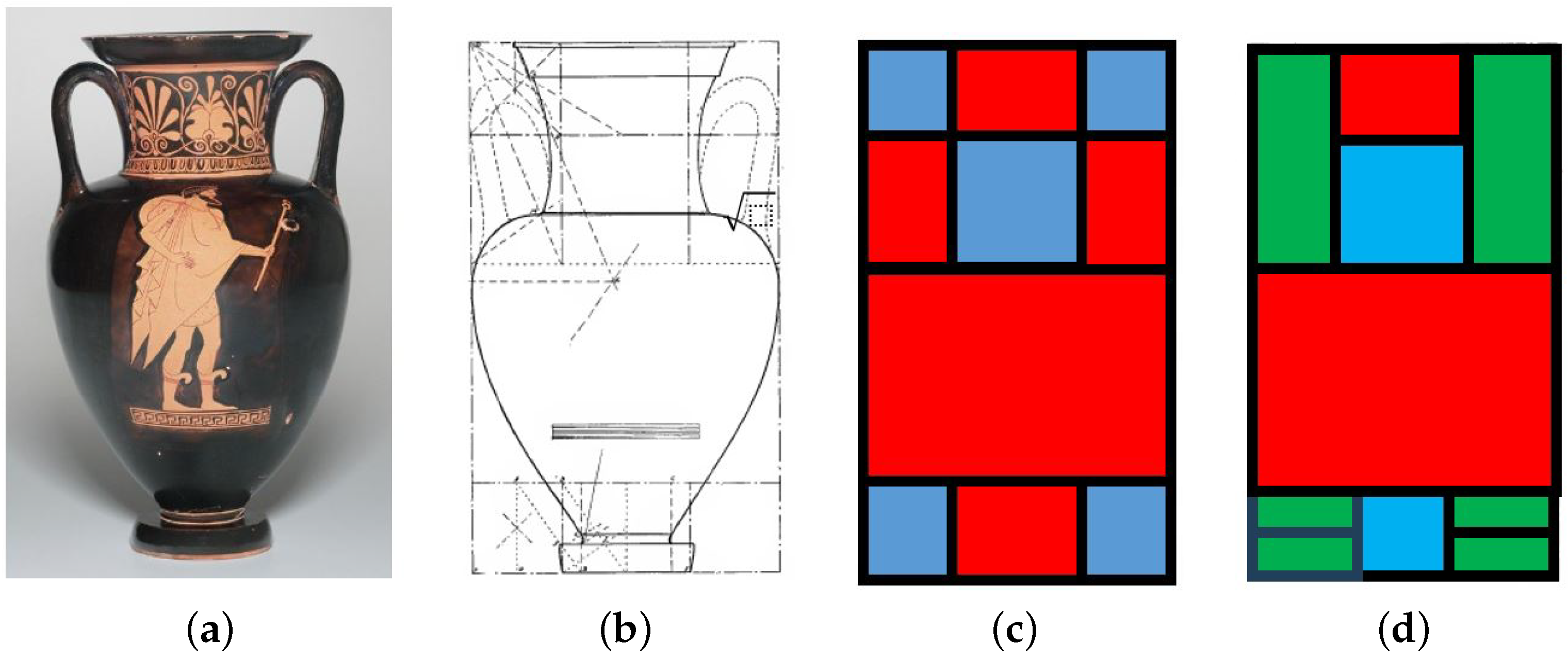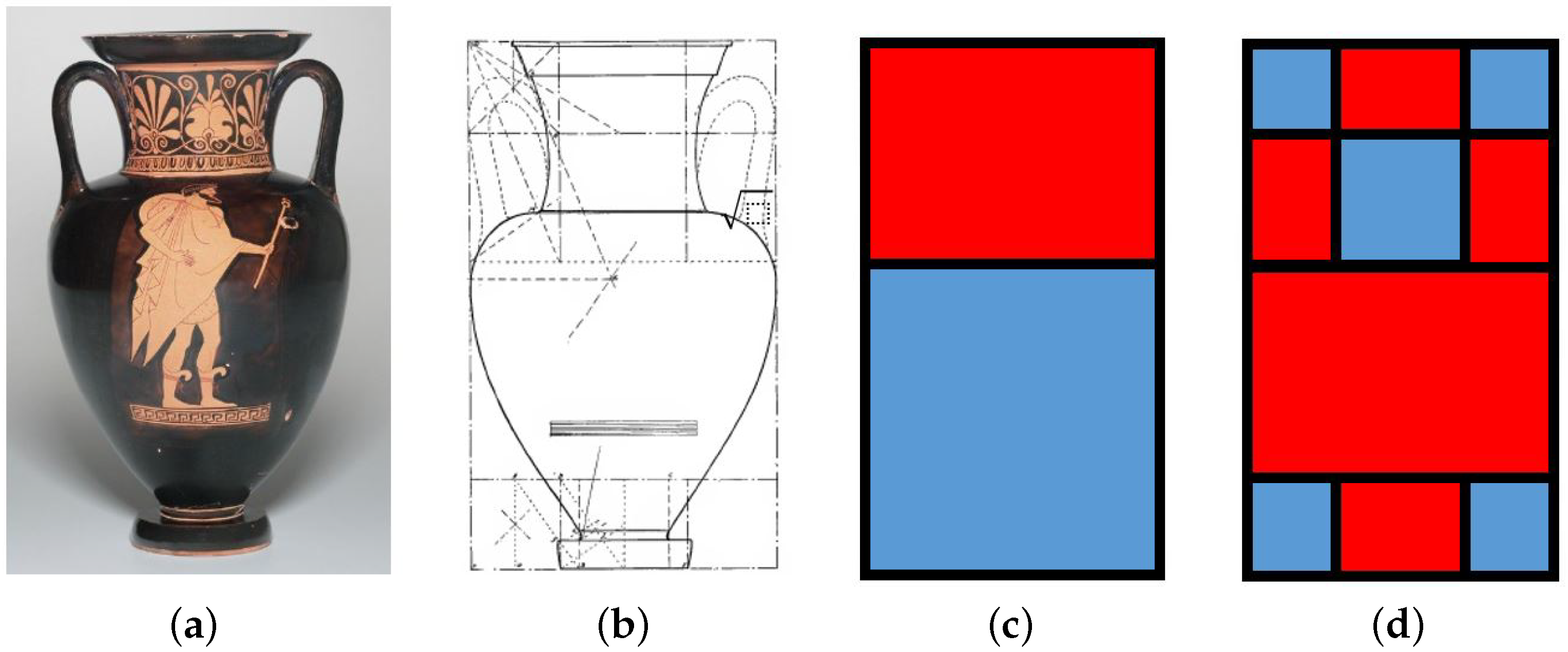 93]. One of the main criticisms is the ad hoc rules for identifying self-similar rectangles and their ratios. Another is the argument that there is no unique way to represent areas in terms of these rectangles. As an example, consider again the Athena and Hermes amphora in