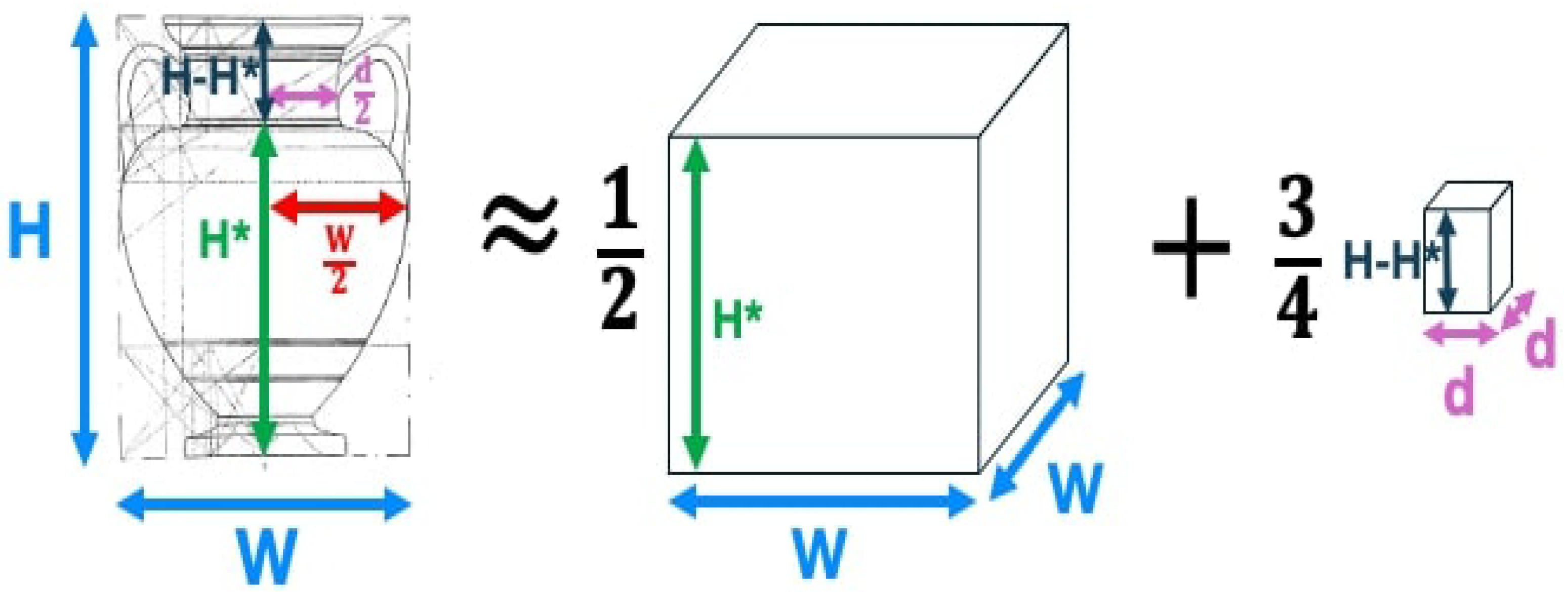 22]. We acknowledge this limitation and suggest that future research examine whether our volume calculation methods can be adapted for commercial amphora types, particularly given the practical importance of volumetric estimation for understanding ancient Mediterranean trade patterns [