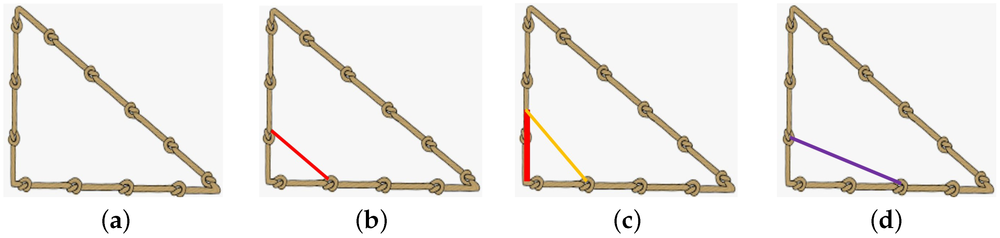 38]. This demonstrates that geometric ratios can be reproduced through repeated construction procedures rather than through numerical calculations. Hahn argued that Greek artisans, before Euclid, used plumb lines, cords, or straightedges to square, draw diagonals or perpendiculars, and inscribe circles in their constructions [