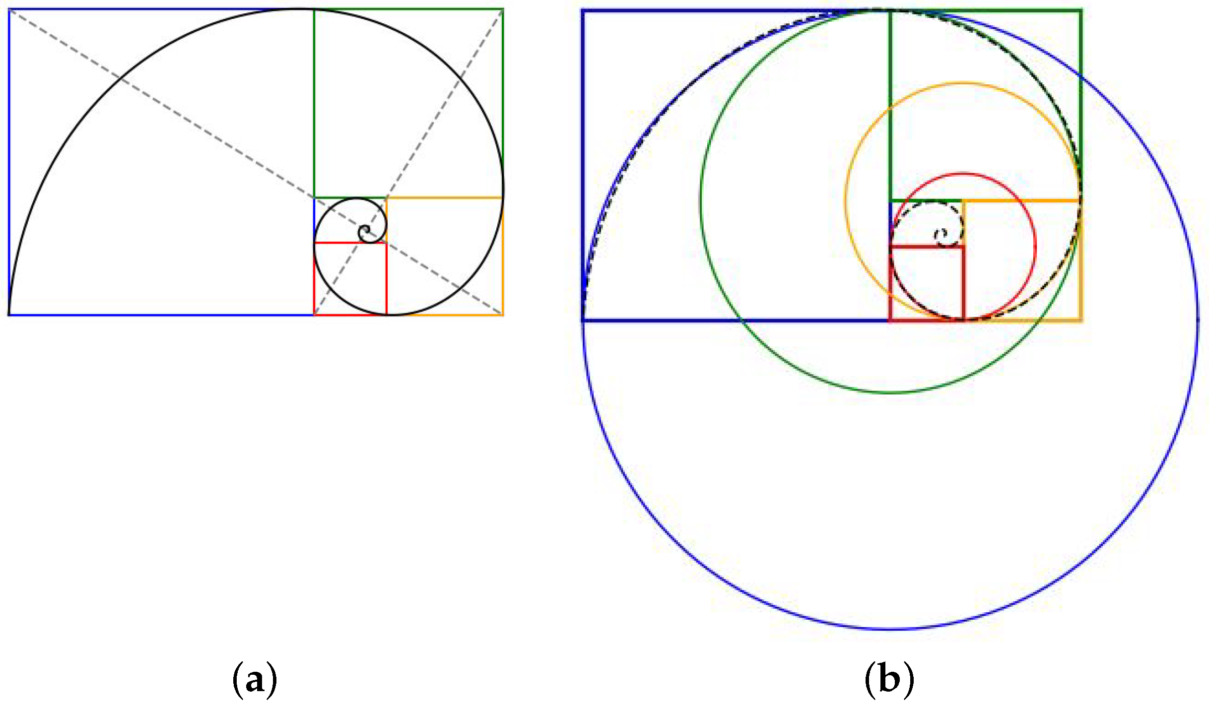 k is carried out by examining the ratio of the sides of the enclosing rectangle, and then looking for squares and self-similar rectangles by examining subsequent ratios and diagonals. For the golden ratio, these have geometric relationships, as shown in