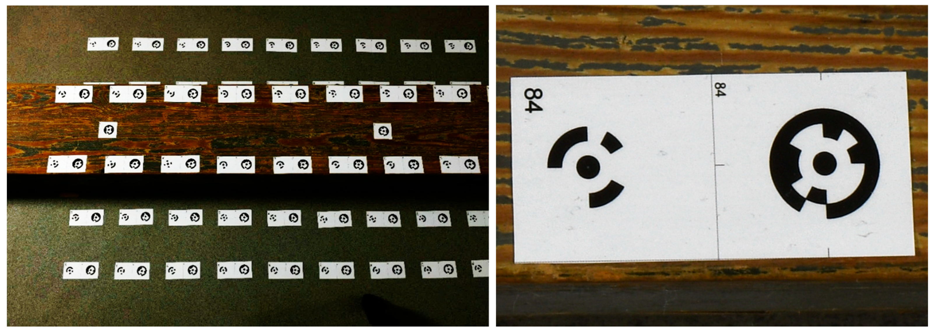 - Shortis, M.R.; Seager, J.W. A Practical Target Recognition System for Close Range Photogrammetry. Photogramm. Rec. 2014, 29, 337–355. [Google Scholar] [CrossRef]