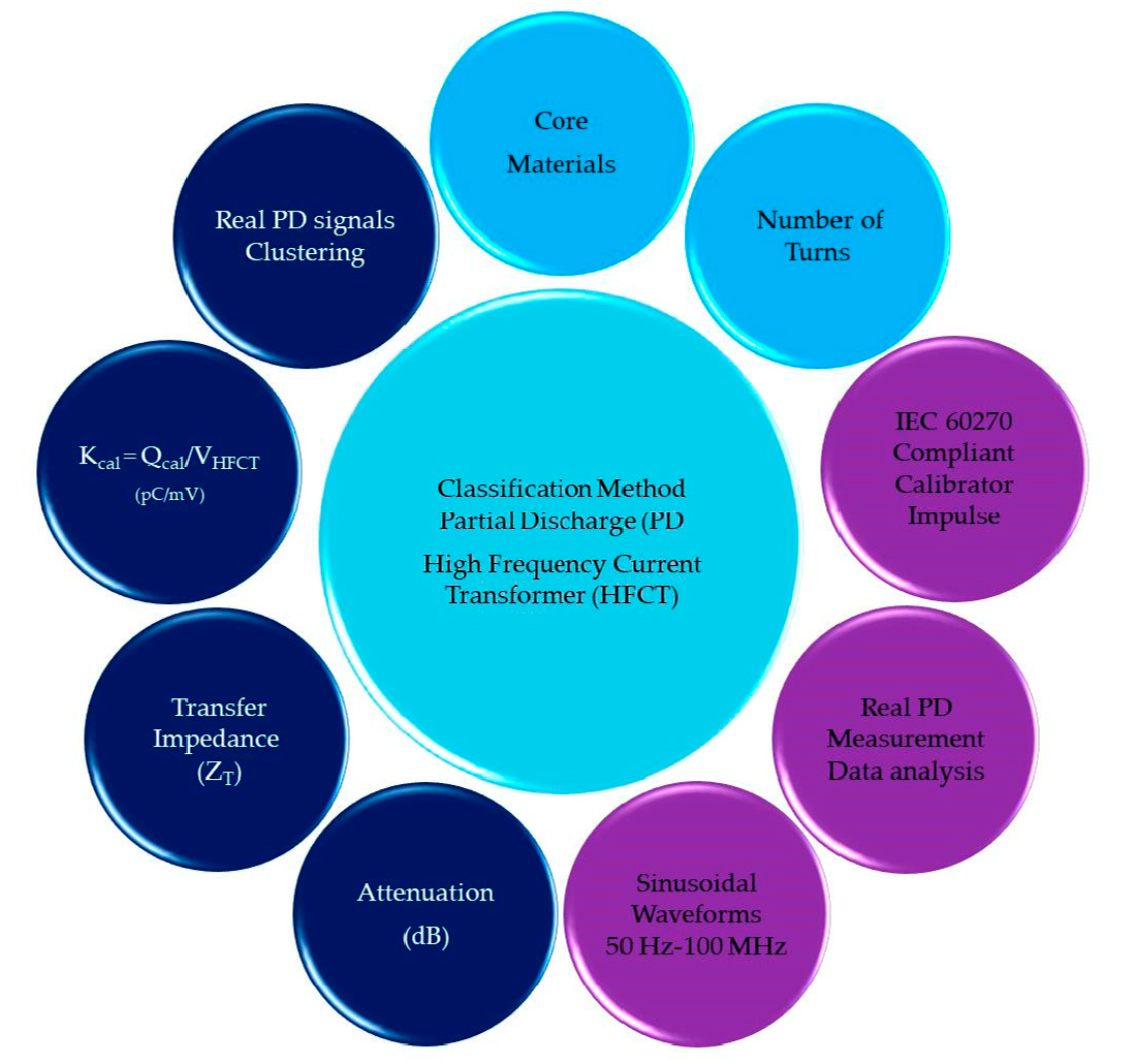 The proposed methodology aligns with previous research on HFCT optimization but extends the analysis by incorporating considerations for continuous acquisition and AI-based processing. By systematically evaluating core selection, winding distribution, and turn number, this work aims to establish guidelines for designing HFCTs that deliver accurate PD measurements under real-world conditions. The findings contribute to the development of advanced monitoring systems capable of supporting predictive maintenance and enhancing the reliability of high-voltage assets.