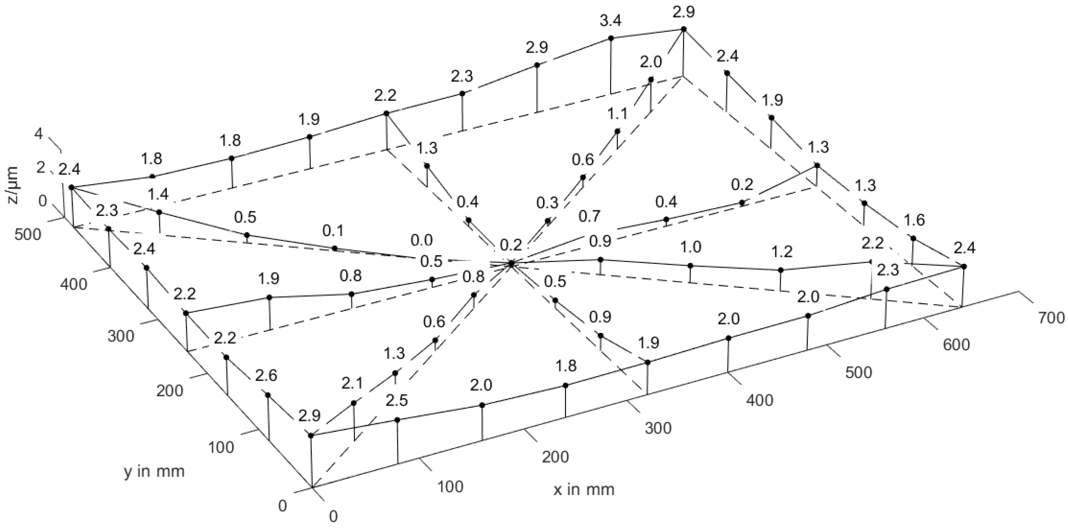 - The height of the lowest point is subtracted from all measured points, and the surface is plotted using these values. The height of the highest point is the flatness deviation FLTt(EDPL).