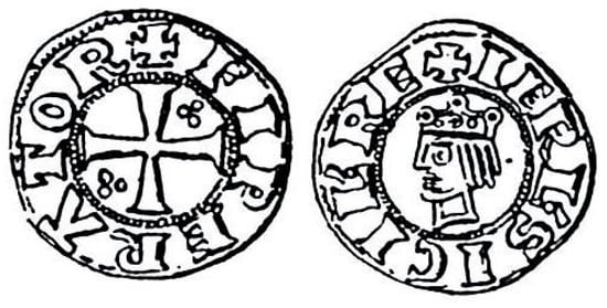 - Travaini, L. Le monete di Federico II: il contributo numismatico alla ricerca storica. In Mezzogiorno. Federico II. Mezzogiorno; Fonseca, C.D., Ed.; De Luca: Roma, Italy, 1999; pp. 655–668. [Google Scholar]