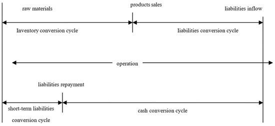 The cash-conversion cycle is the part of the operating cycle that is not financed with short-term liabilities due to their repayment before the end of the cycle. The cash-conversion cycle (CCC) is a basic measure of working-capital management that is widely used in the literature [12,13,14].