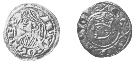 - Engel, A.; Serrure, R. Traité de Numismatique du Moyen Age, 2nd ed.; Arnaldo Forni: Paris, France, 1890; Volume 2, p. 177. [Google Scholar]