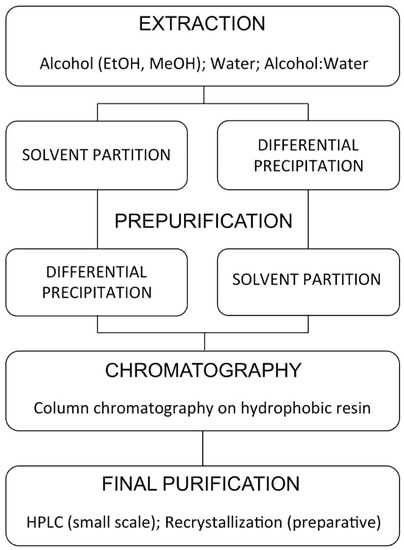 Ecdysteroid extraction/purification is a multi-step process (Figure 10). Its rationale can be found in different reviews [38,106,107,108].