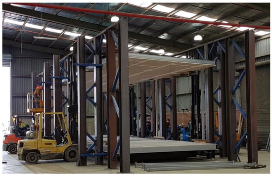 The abovementioned steps of a conceptual structural design of a prefab building are still principally similar to those of a traditional in situ building. However, there are a few further unique steps required for a prefab building design. These unique requirements arise as a result of the structural design being centred around the prefab builder, as discussed previously. Firstly, similar to the modularisation activity, the conceptual structural design needs to consider the strategy for the transportation, lifting and handling of the prefab units within the manufacturing facility and afterwards, following a DfMA format. DfMA consists of two components, namely, Design for Manufacturing (DfM) and Design for Assembly (DfA) [21,22,23]. The arrangement of structural elements and frames need to be compatible with the existing factory setup and manufacturing (fabrication) process of the prefab builder. Some activities, such as framing of steel or timber modular floor and ceiling frames, could be fully or partly automated within an offsite manufacturing facility. The structural design should be carried out in a way that assists the smooth functioning of the fabrication process to obtain optimum outputs with greater accuracy, while ensuring minimised waste generation, energy usage and emissions.