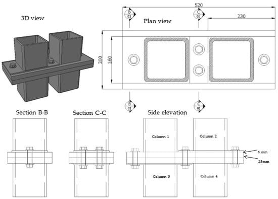 Therefore, the tear-out capacity of the entire inter-modular connection would be 378 kN (94.5 kN × 4). This value is higher than the shear capacity of the connection. Therefore, it can be deduced here that checking for shear capacity would satisfy the other two failure criteria as well.