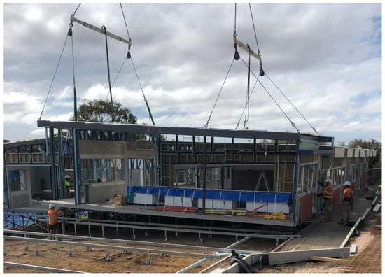 A prefabricated (prefab) building, by definition, is where an entire building or an assembly of its components is manufactured at an offsite facility and assembled onsite from self-sustained volumetric modules or separate panels. Prefabrication has existed in construction for many decades in various forms such as dry wall systems, structural insulated panels (SIP), prestressed beams, prefabricated roof trusses, prefabricated reinforcement cages, etc. [1,2,3]. Modern Methods of Construction (MMC) with Offsite Manufacturing (OSM) have arisen to integrate these various technologies into a more holistic and systematic solution, and most modern prefab manufacturers will cater for various architectural designs with prefab units (modules or panels) of creative geometries and innovative connection systems. Such prefab units are mass produced in factories with upskilled specialist workmanship, and at times with automation and robotics in an offsite manufacturing facility, transforming the traditional site-based and labour-intensive approach to construction. Prefab building units have been widely used for residential, commercial and public infrastructure, post-disaster structures and many other applications around the world. Particularly in Australia, the use of modular construction in public infrastructure is a highlight in applications such as railway stations, schools, hospitals, police stations, childcare facilities, etc. [4].