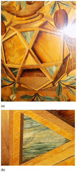 - Vega Gutierrez, P.; Robinson, S.C. Determining the presence of spalted wood in Spanish marquetry woodworks of the 1500s through the 1800s. Coatings 2017, 7, 188. [Google Scholar] [CrossRef]