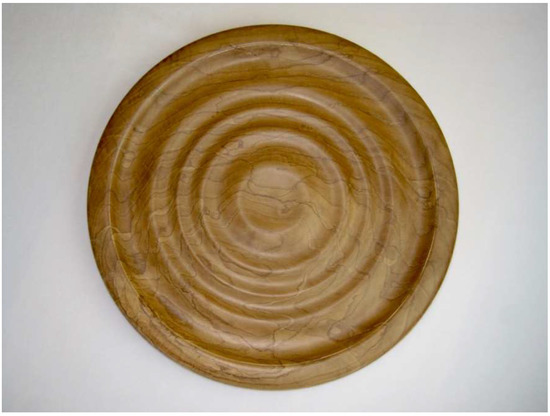 The freedom of design lead to a broader inclusion of wood in woodturning, and birthed the U.S. Studio Woodturning Movement. This movement, like many studio movements of the time, attempted to redefine woodturning from craft and functionality into conceptual art (Figure 8). Early studio woodturning used spalted wood as the base material to make these statements—using a presumed ‘punky’ or otherwise ‘useless’ decayed wood for both sculptural and semi-functional purposes. Although all types of spalted wood were used, black zone-line-type spalting was the most popular and was, thereby, popularized along with the changing shapes popular with the studio woodturning through the 1980s. The term ‘spalting’ was coined during this time, although its full etiology remains unknown [6]. Some of the earliest use of turned spalted wood from this movement came from Rude Osolnik (1915–2001) and Osolnik Originals (the signature indicating his wife also contributed to the piece). Mel Lindquist (1911–2000) was also an early proponent of spalted wood for turning and together with his then-ceramicist son Mark, pushed U.S. woodturning into a studio movement. Spalted wood, spalted turnings, and, later, spalted sculpture went from tented craft shows to downtown galleries, to Fine Woodworking and the New York Times, to, finally, museums such as the Smithsonian’s Renwick.