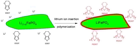 - Lepage, D.; Michot, C.; Liang, G.; Gauthier, N.; Schougaard, S.B. A soft chemistry approach to coating of LiFePO4 with a conducting polymer. Angew. Chem. Int. Ed. 2011, 50, 6884–6887. [Google Scholar] [CrossRef]