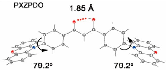 Enolic structure of 1,3-bis(4(10H-phenoxazin-10-yl)phenyl)3-hydroxyprop-2-en-1-one (PXZDO). Taken from Ref. [77] with permission from the American Chemical Society.