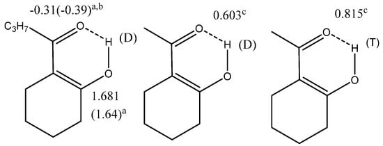 - Belova, N.V.; Sliznev, V.V.; Oberhammer, H.; Girichev, G.V. Tautomeric and conformational properties of beta-diketones. J. Mol. Struct. 2010, 978, 282–293. [Google Scholar] [CrossRef]